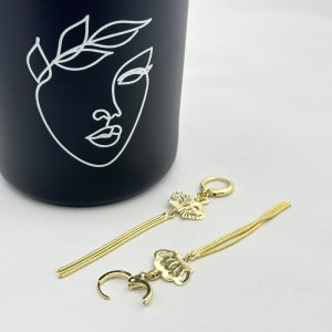 Cercei la moda, colectie 2025, de calitate ireprosabila, sunt placati cu aur 18k in strat de 3 microni. Este permis contactul cu apa, nu oxideaza si nu contin nichel. Lungime aproximativ 3.8 cm, inchidere tortita rezistenta...