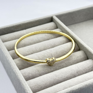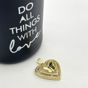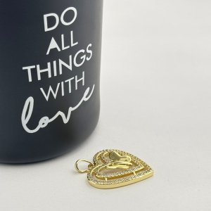 Bijuterie placata cu aur galben de 18k, strat de 3 microni, pandantiv care nu contine nichel, nu oxideaza, lungime aproximativ 2.7 cm, in forma unei inimi decorate cu mici cristale Zirconia stralucitoare...