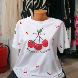 Tricou pentru femei, culoarea predominanta alb, confectionat din bumbac, fabricat in Turcia. Este disponibil pe masuri. ..