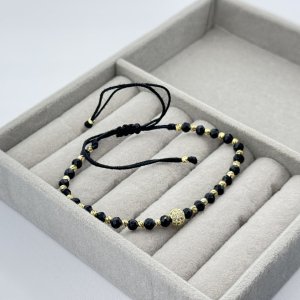 Bratara din otel inoxidabil, confectionata pe snur cerat, rezistent, de lungime ajustabila, cu bilute aurii. Nu contine nichel...